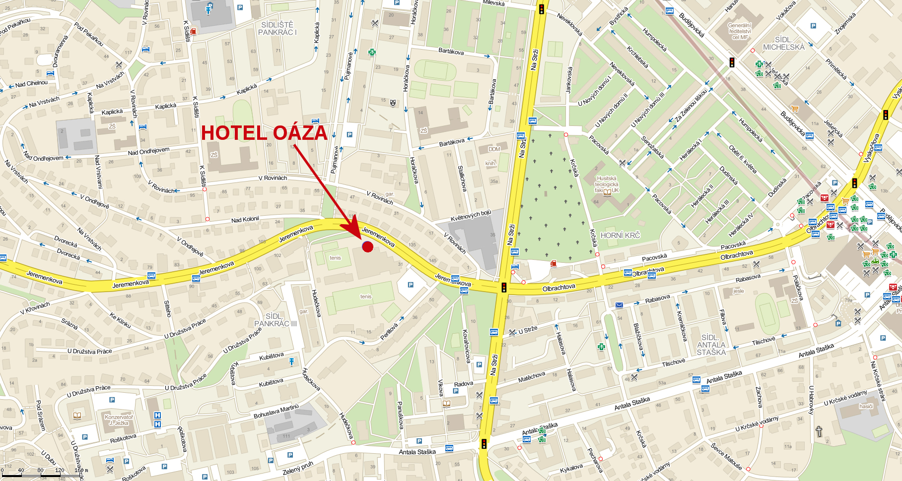 METRO - trasa B - stanice Náměstí Republiky, dále tramvají do zastávky Dlouhá třída